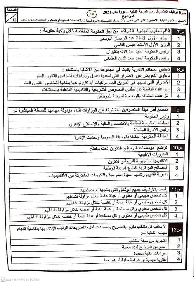 اختبار بصيغة Qcm يتعلق بمباراة توظيف المتصرفين من الدرجة الثانية ، وزارة التربية الوطنية والتكوين المهني والتعليم العالي والبحث العلمي، تخصص العلوم القانونية